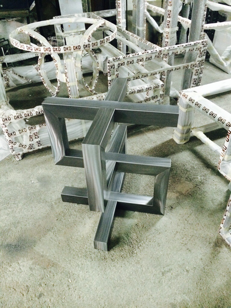Y la das una bonita terminación industrial pero fina, informal pero elegante sobre la que apoyar un gran cristal grueso que le de la importancia a la creación recien hecha que merece y que sea el punto y final a una gran y elegante mesa donde semanas despues, quizàs una reunión, quizás en encuentro familiar o tal vez el escaparate de una tienda de lujo recuerden que hoy, 29 de julio de 2014, está mesa se dibujó y vino al mundo construida para ti.